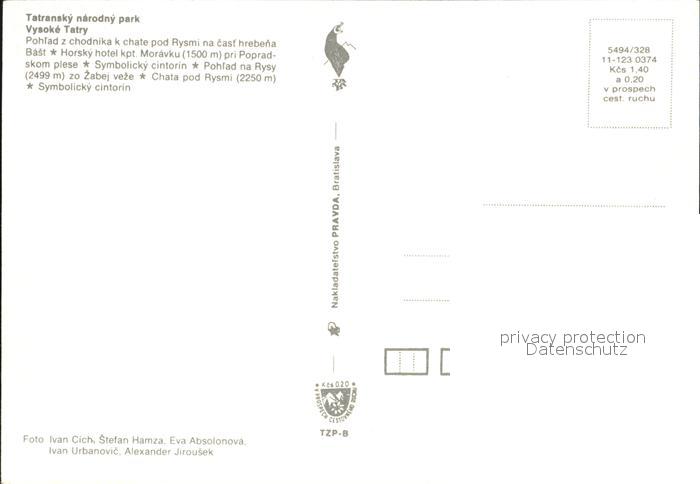 Vysoke Tatry Pohlad z chodnika Horsky hotel Popradskom plese Symbolicky Rysy zo Zabej veze Chata pod Rymmi Symbolicky cintorin postalisch nicht gelaufen Erhaltung siehe scans