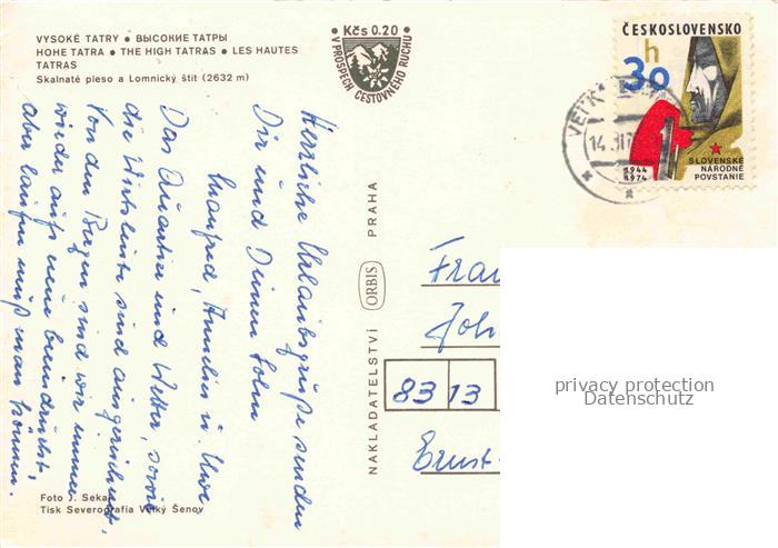 74042095 old postcard Vysoke Tatry Poprad SK Skalnate oieso Lomnicky stit postalisch gelaufen Erhaltung siehe scans [IrynaD87] KatCode: 11490