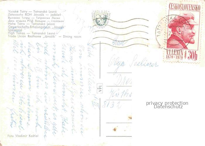 74042928 old postcard Vysoke Tatry Poprad SK Zotavovna ROH Janosik postalisch gelaufen Erhaltung siehe scans [WerneD78] KatCode: 11490