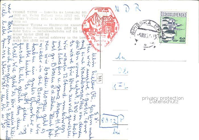 old postcard Vysoke Tatry Seilschwebebahn auf die Lomnitzer Spitze postalisch gelaufen Erhaltung siehe scans