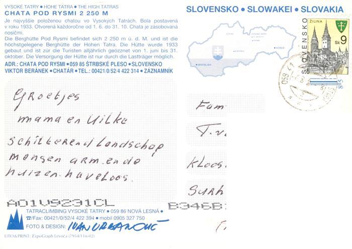 73907855 old postcard Vysoke Tatry SK Chata Pod Rysmi postalisch gelaufen Erhaltung siehe scans [FriedD77] KatCode: 11490