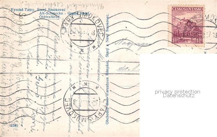 old postcard Vysoke Tatry Stary Smokovec postalisch gelaufen Erhaltung siehe scans [KathaD81]