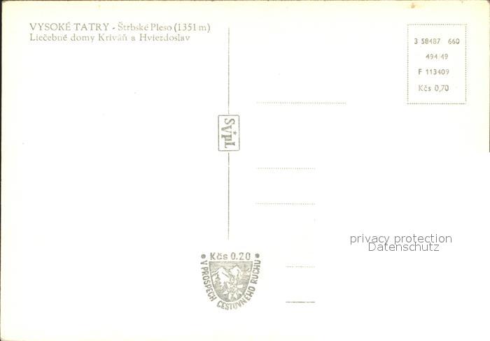 Vysoke Tatry Strbske Pleso Liecebne domy Krivan a Hviezdoslav postalisch nicht gelaufen Erhaltung siehe scans