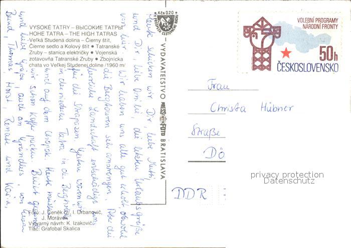 Vysoke Tatry Velka Studena dolina Cierne sedlo a Kolovy stit Tatranske Zruby stanica elektricky Zbojnicka chata postalisch nicht gelaufen Erhaltung siehe scans [WerneD78 kv016box]