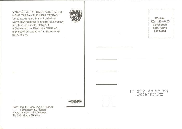 Vysoke Tatry Velka Studena dolina Pohlad od Vareskoveho plesa postalisch nicht gelaufen Erhaltung siehe scans