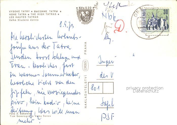 old postcard Vysoke Tatry Wanderer postalisch gelaufen Erhaltung siehe scans