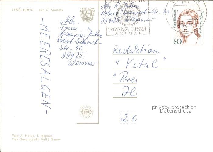 old postcard Vyssi Brod Teilansicht Kirche Und Kircheninneres postalisch gelaufen Erhaltung siehe scans