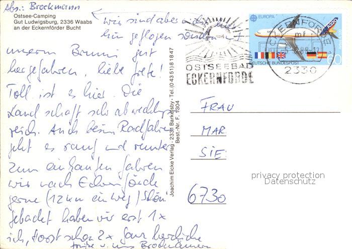 72114077 alte Postkarte Waabs Camping Gut Ludwigsburg postalisch gelaufen Erhaltung siehe scans KatCode: 11110001058166