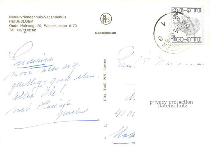 74019242 carte postale Waasmunster Oost-Vlaanderen Belgie Natuurvriendenhuis Vacantiehuis Heidebloem postalisch gelaufen Erhaltung siehe scans [FriedD77] KatCode: 11070042000872