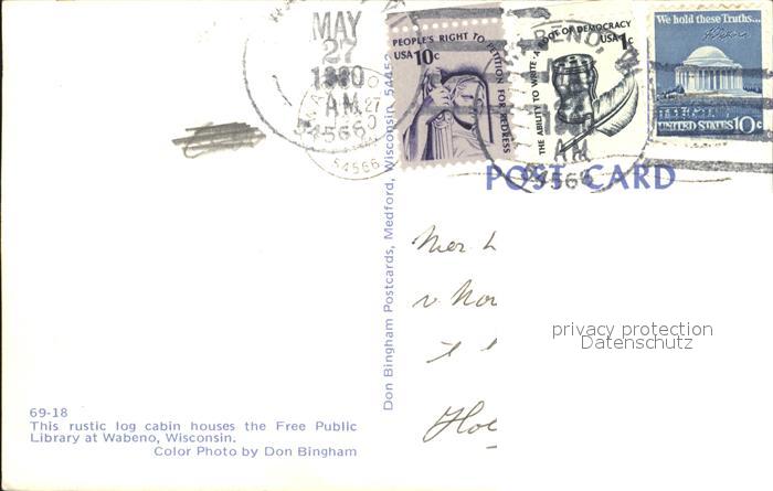 72289695 old postcard Wabeno Public Library postalisch gelaufen Erhaltung siehe scans KatCode: 14140520000000