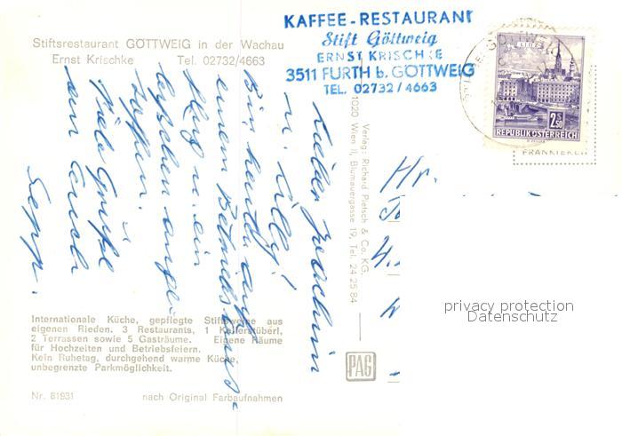 73289900 alte Postkarte Wachau Oesterreich Stiftsrestaurant Goettweig postalisch gelaufen Erhaltung siehe scans [LiesaD40] KatCode: 11390