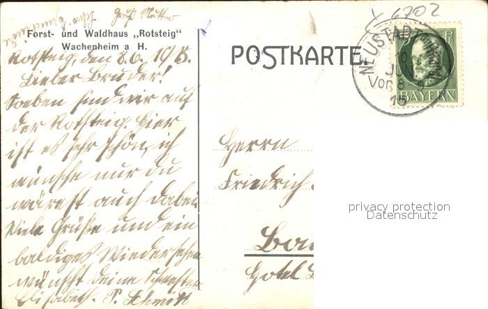 41791871 alte Postkarte Wachenheim Weinstrasse Forsthaus Waldhaus Rotsteig postalisch gelaufen Erhaltung siehe scans KatCode: 11110007332046
