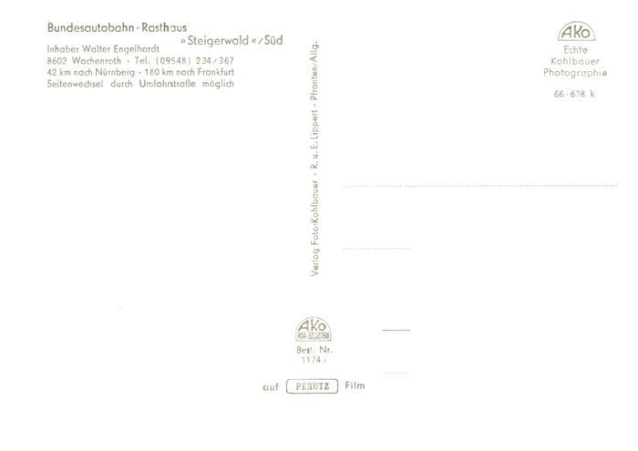 73878221 Wachenroth Bundesautobahn Rasthaus Steigerwald Restaurant postalisch nicht gelaufen Erhaltung siehe scans [FriedD77] KatCode: 11110009572160