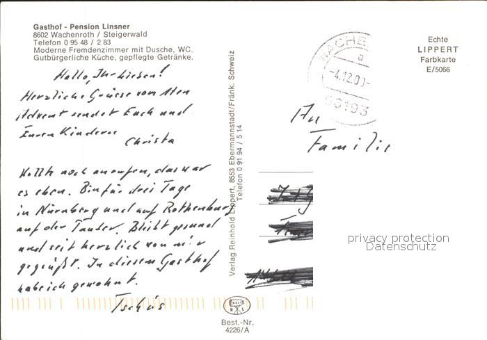 72006349 alte Postkarte Wachenroth Gasthof Linser postalisch gelaufen Erhaltung siehe scans KatCode: 11110009572160