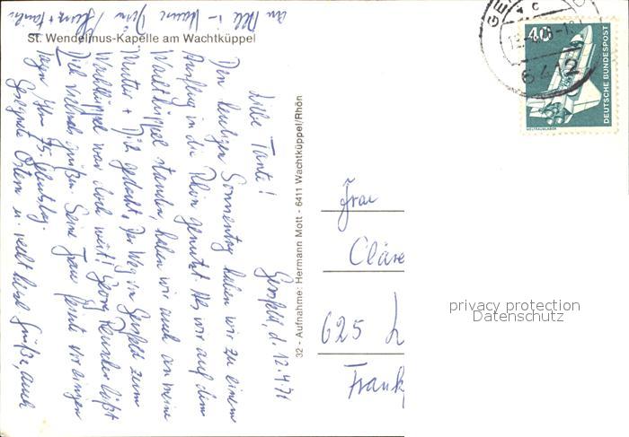 72478004 alte Postkarte Wachtkueppel St. Wendelinus Kapelle postalisch gelaufen Erhaltung siehe scans KatCode: 11110006631021