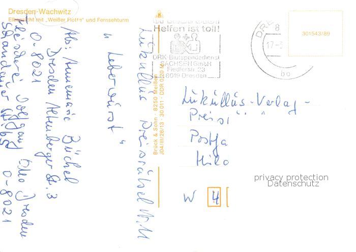 73813470 alte Postkarte Wachwitz Dresden Elbepartie mit Weisser Flotte und Fernsehturm postalisch gelaufen Erhaltung siehe scans [WerneD78] KatCode: 11110014262000