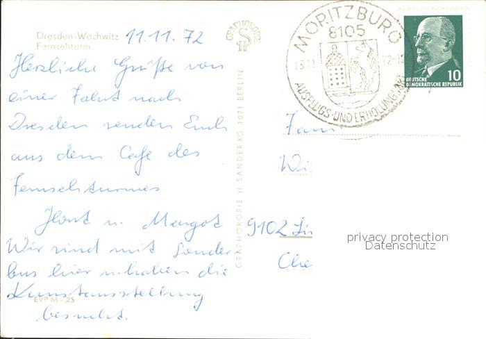 72299217 alte Postkarte Wachwitz Fersehturm postalisch gelaufen Erhaltung siehe scans KatCode: 11110014262000