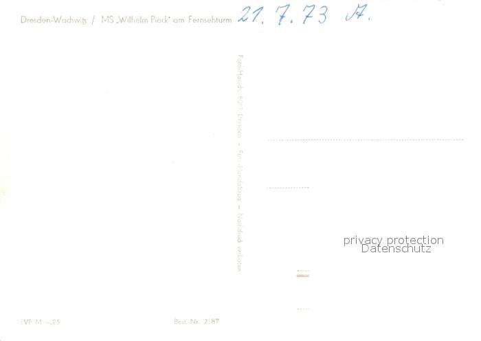 72986484 Wachwitz MS Wilhelm Pieck am Fernsehturm postalisch nicht gelaufen Erhaltung siehe scans [WerneD78] KatCode: 11110014262000