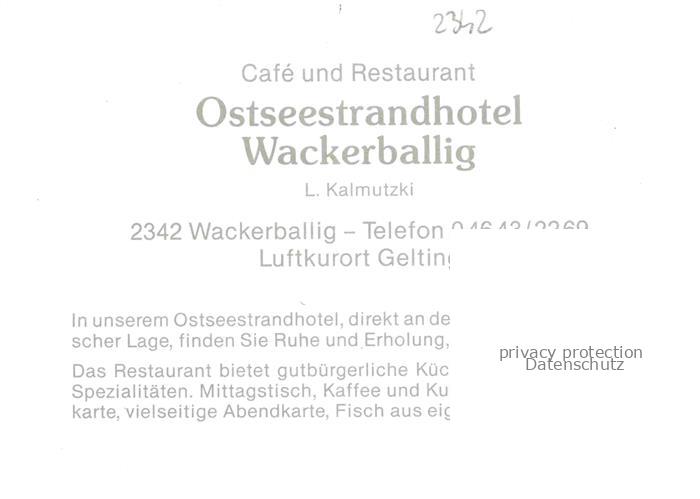74100674 Wackerballig Gelting Schleswig-Holstein Mole Strand Ostseestrandhotel Wackerballig Restaurant Freiterrasse postalisch nicht gelaufen Werbekarte (keine Postkarte) Erhaltung siehe scans [WerneD78] KatCode: 11110001059112