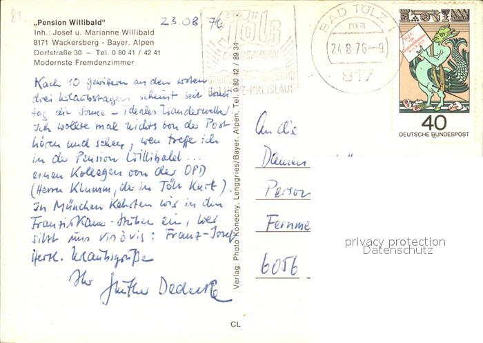72599542 alte Postkarte Wackersberg Bad Toelz Pension Willibald postalisch gelaufen Erhaltung siehe scans [LiesaD40] KatCode: 11110009173145