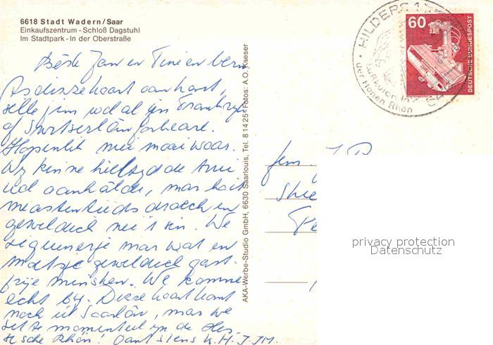 72787365 alte Postkarte Wadern Einkaufszentrum Schloss Dagstuhl Stadtpark Oberstrasse postalisch gelaufen Erhaltung siehe scans [WerneD78] KatCode: 11110010042116