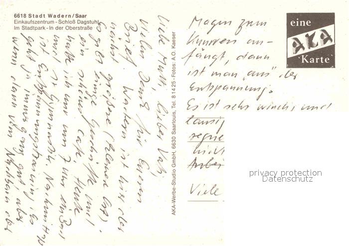 72907000 Wadern Schloss Dagstuhl Stadtpark Oberstrasse postalisch nicht gelaufen Erhaltung siehe scans [LiesaD40] KatCode: 11110010042116