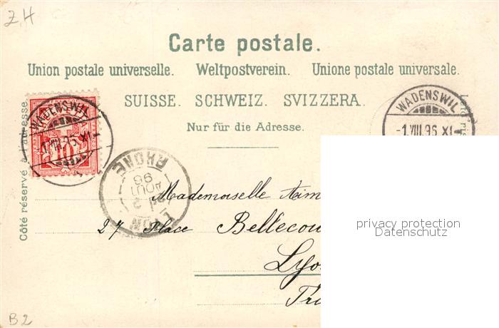 13558949 alte Postkarte Waedenswil Gasthof zum Engel Wasserfaelle Dampfboot Waedensweil Gessners Schloss postalisch gelaufen Erhaltung siehe scans [WerneD78] KatCode: 11470260890352