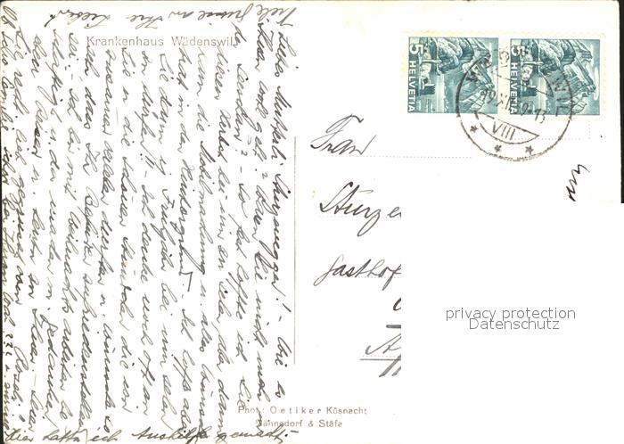 11658025 alte Postkarte Waedenswil Krankenhaus postalisch gelaufen Erhaltung siehe scans KatCode: 11470260890352