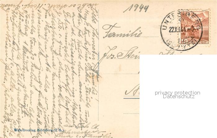 13770308 alte Postkarte Waedenswil Waedensweil ZH Ortsansicht mit Kirche postalisch gelaufen Erhaltung siehe scans [FriedD77] KatCode: 11470260890352