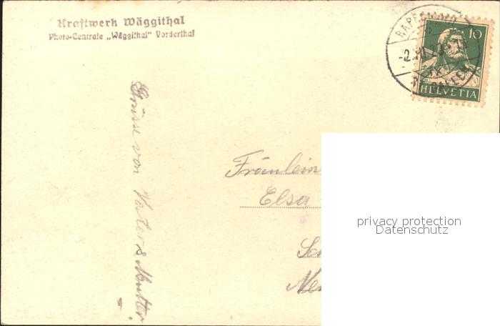 11943421 Waeggithal Kraftwerk postalisch gelaufen Erhaltung siehe scans Alte Ansichtskarte Postkarte alte Postkarte Nata Katcode 11470170495464