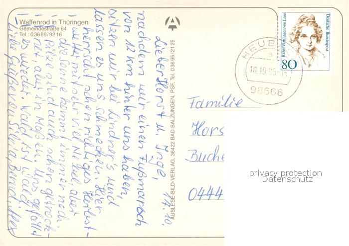 73664681 alte Postkarte Waffenrod Gaststaette Lindner Pension Panorama Ortsansicht postalisch gelaufen Erhaltung siehe scans [WerneD78] KatCode: 11110016069012
