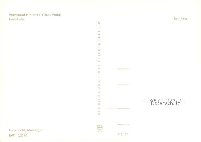 73675614 Waffenrod HO Gaststaette Park Cafe postalisch nicht gelaufen Erhaltung siehe scans [FriedD77] KatCode: 11110016069012