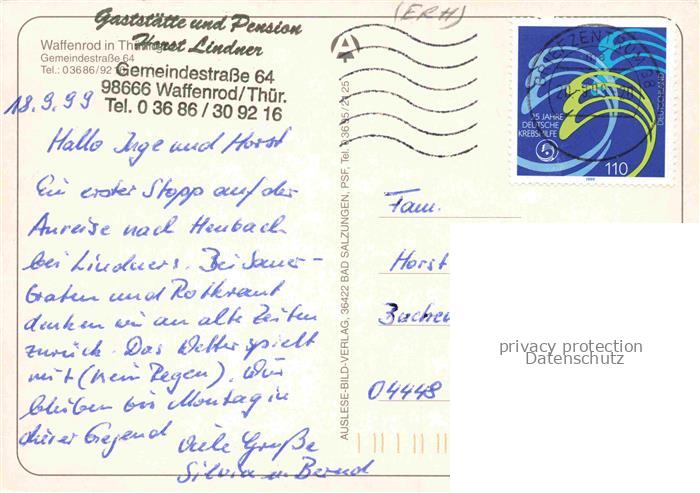 74028129 alte Postkarte Waffenrod Thueringen Gaststaette Pension Lindner Gastraum Panorama postalisch gelaufen Erhaltung siehe scans [FriedD77] KatCode: 11110016069012