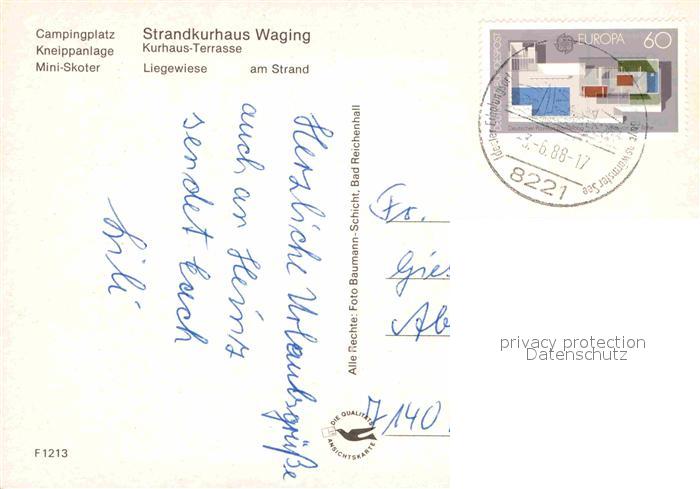 72855278 alte Postkarte Waging See Campingplatz Kneippanlage Miniscooter Strandkurhaus Terrasse Liegewiese Strand postalisch gelaufen Erhaltung siehe scans [WerneD78] KatCode: 11110009189162
