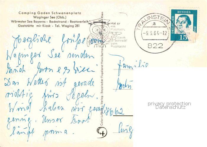 72896690 alte Postkarte Waging See Fliegeraufnahme Camping Gnaden Schwanenplatz postalisch gelaufen Erhaltung siehe scans [AndreD76] KatCode: 11110009189162
