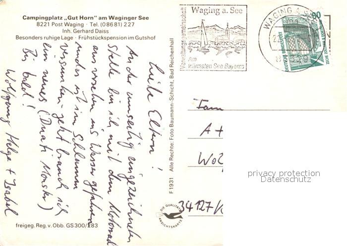 73158414 alte Postkarte Waging See Fliegeraufnahme Camping Gut Horn am Waginger See postalisch gelaufen Erhaltung siehe scans [LiesaD40] KatCode: 11110009189162