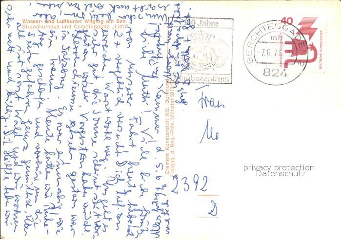 72063461 alte Postkarte Waging See Fliegeraufnahme Kurhaus Camping Lido postalisch gelaufen Erhaltung siehe scans KatCode: 11110009189162
