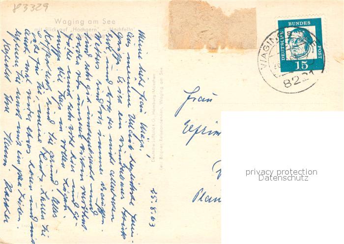 73668584 alte Postkarte Waging See Fliegeraufnahme mit Hochgern und Hochfelln postalisch gelaufen Erhaltung siehe scans [WerneD78] KatCode: 11110009189162
