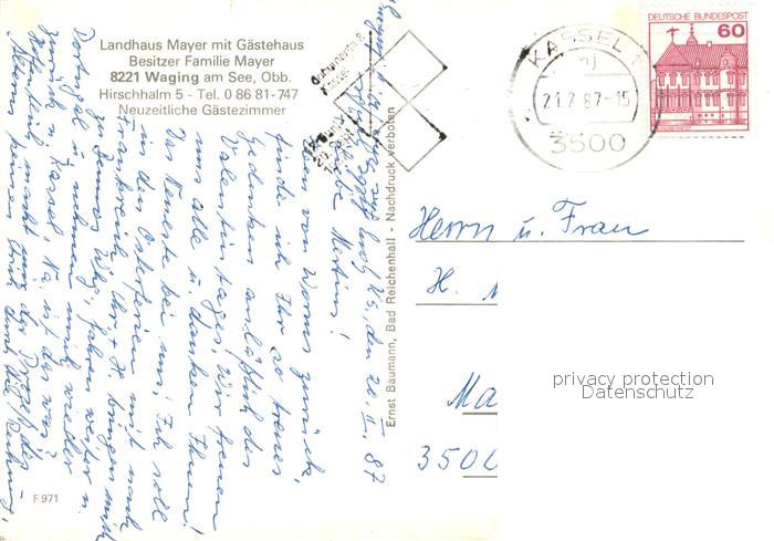 73615185 alte Postkarte Waging See Landhaus Mayer Hirschhalm Gaststube postalisch gelaufen Erhaltung siehe scans [WerneD78] KatCode: 11110009189162