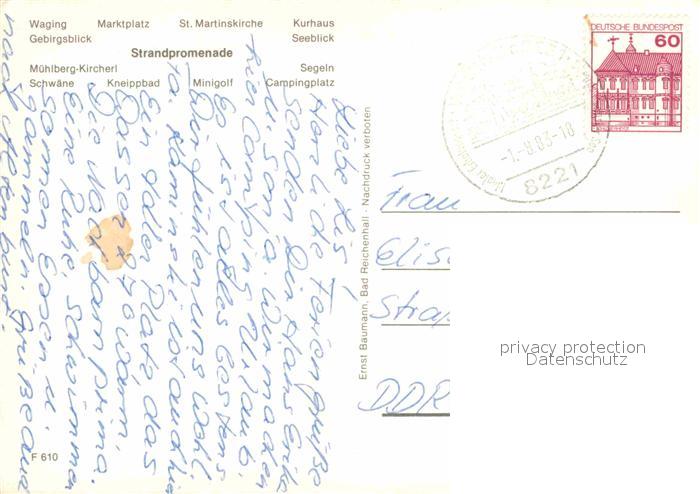 72861021 alte Postkarte Waging See Marktplatz Sankt Martinskirche Kurhaus Muehlberg Kircherl postalisch gelaufen Erhaltung siehe scans [AndreD76] KatCode: 11110009189162