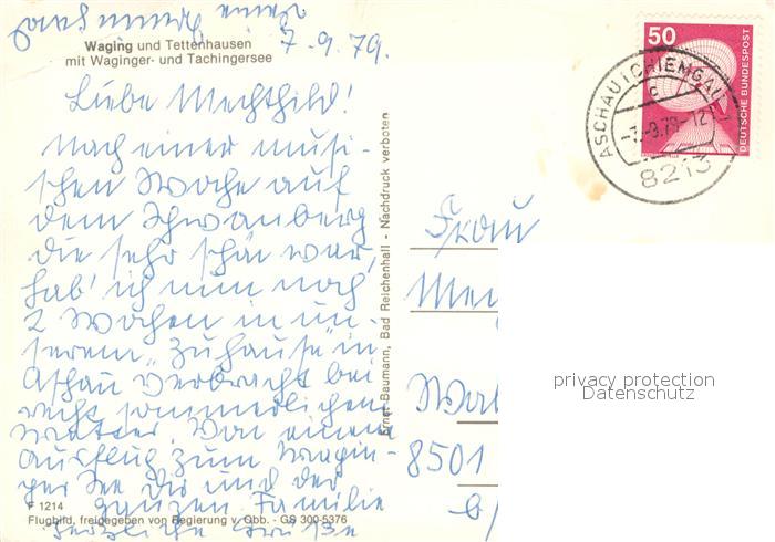 73742805 alte Postkarte Waging See mit Tettenhausen Waginger und Tachingersee Fliegeraufnahme postalisch gelaufen Erhaltung siehe scans [WerneD78] KatCode: 11110009189162