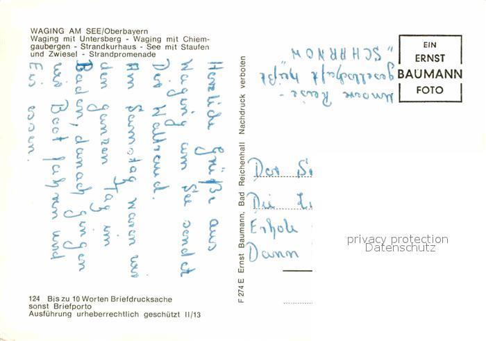 72859281 alte Postkarte Waging See mit Untersberg Chiemgaubergen Strandkurhaus Staufen Zwiesel postalisch gelaufen Erhaltung siehe scans [WerneD78] KatCode: 11110009189162