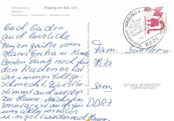 72860985 alte Postkarte Waging See Muehlbergkirchel Marktplatz Strandkurhaus Minigolfplatz Promenade postalisch gelaufen Erhaltung siehe scans [AndreD76] KatCode: 11110009189162