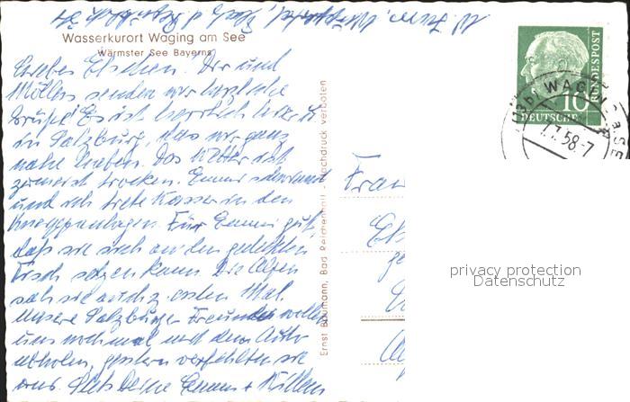 72152274 alte Postkarte Waging See Ortsansicht mit Kirche Untersberg Berchtesgadener Alpen postalisch gelaufen Erhaltung siehe scans KatCode: 11110009189162