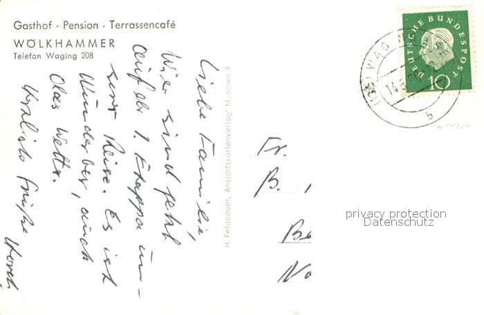 43495906 alte Postkarte Waging See Panorama Gasthof Pension Terrassencafe Woelkhammer postalisch gelaufen Erhaltung siehe scans [FriedD77] KatCode: 11110009189162