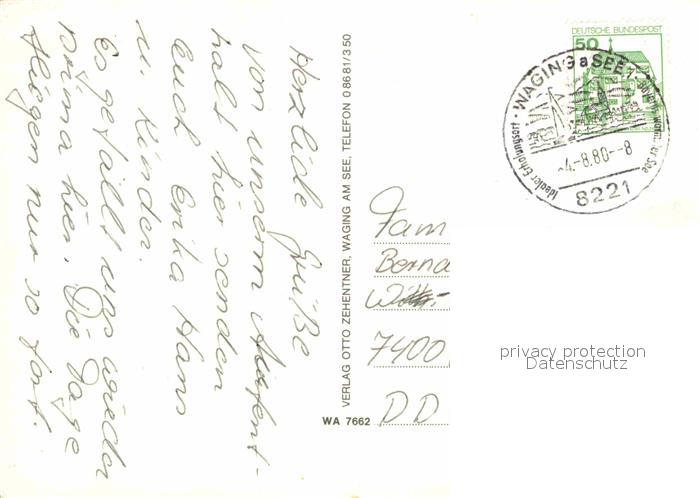 72860984 alte Postkarte Waging See Rund um das Strandkurhaus postalisch gelaufen Erhaltung siehe scans [AndreD76] KatCode: 11110009189162