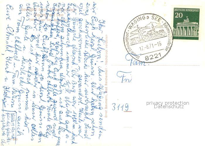 73219128 alte Postkarte Waging See Seestadt beim Strandkurhaus Gaststaette Restaurant Kegelbahn Strand Promenade postalisch gelaufen Erhaltung siehe scans [FriedD77] KatCode: 11110009189162