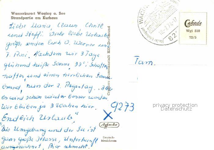 72617343 alte Postkarte Waging See Strandpartie am Kurhaus postalisch gelaufen Erhaltung siehe scans [WerneD78] KatCode: 11110009189162