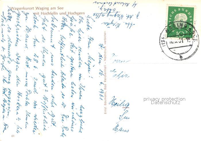 72995562 alte Postkarte Waging See Teilansicht Hochfelln Hochgern postalisch gelaufen Erhaltung siehe scans [AndreD76] KatCode: 11110009189162