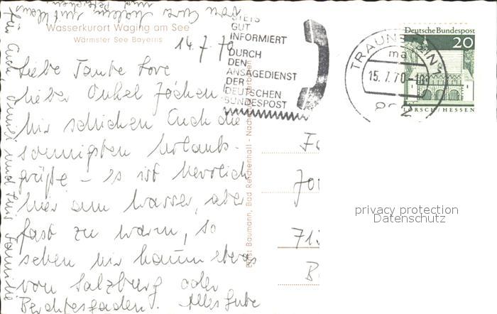 72161856 alte Postkarte Waging See Waginger See mit Salzkammergut Bergen Segelsport postalisch gelaufen Erhaltung siehe scans KatCode: 11110009189162